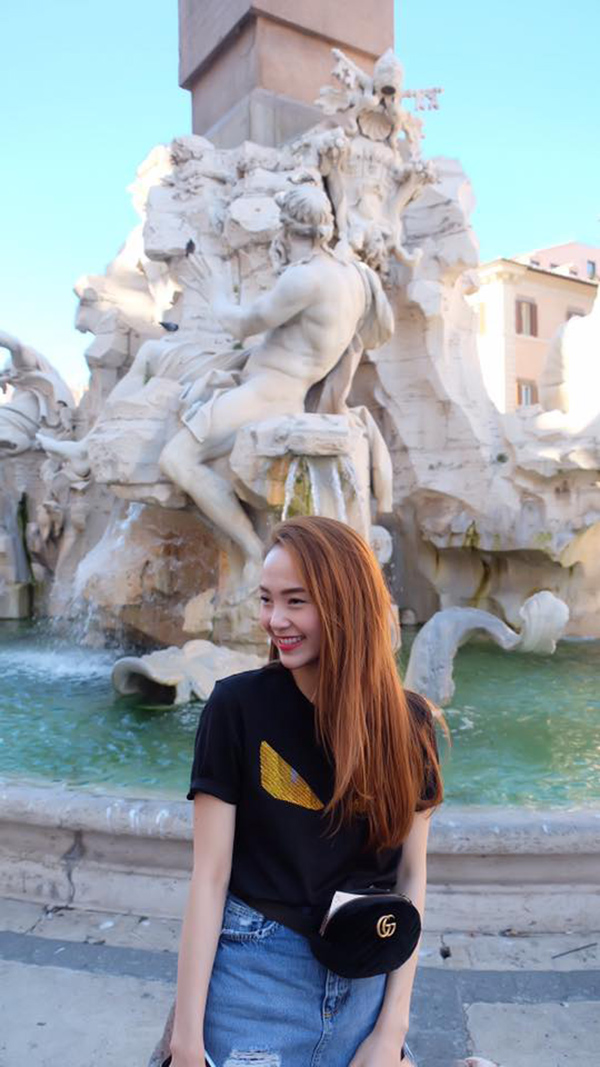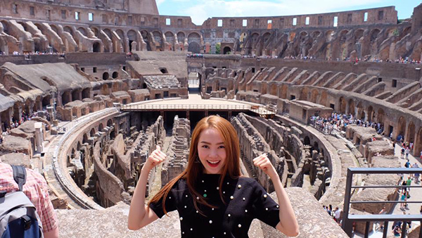 Mặc dù đi du lịch rất nhiều lần nhưng Minh Hằng vẫn tỏ ra thích thú khi đến từng địa điểm du lịch. Đặc biệt, người đẹp không giấu nổi niềm vui, phấn khích khi đến tham quan đấu trường La Mã - Rome.
