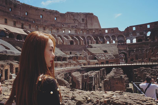Minh Hằng xinh đẹp, giản dị đi khám phá đấu trường La Mã.