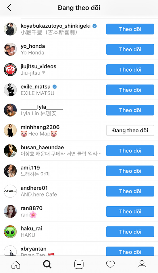 Chính vì thế, Seungri cũng đã ngay lập tức “follow” Minh Hằng trên Instagram để tiện cập nhật hình ảnh của cô. Minh Hằng cũng là nghệ sĩ Việt duy nhất xuất hiện trong danh sách 245 người mà Seungri đang “theo dõi”.
