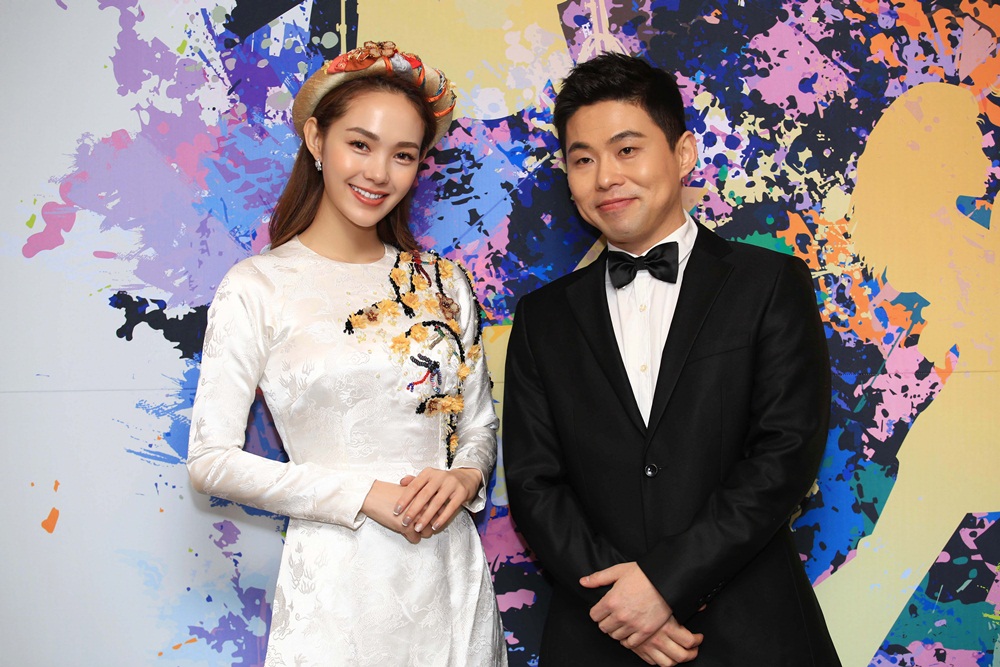 Minh Hằng chụp ảnh cùng Young Saeung Heo (thành viên cũ của nhóm SS501).