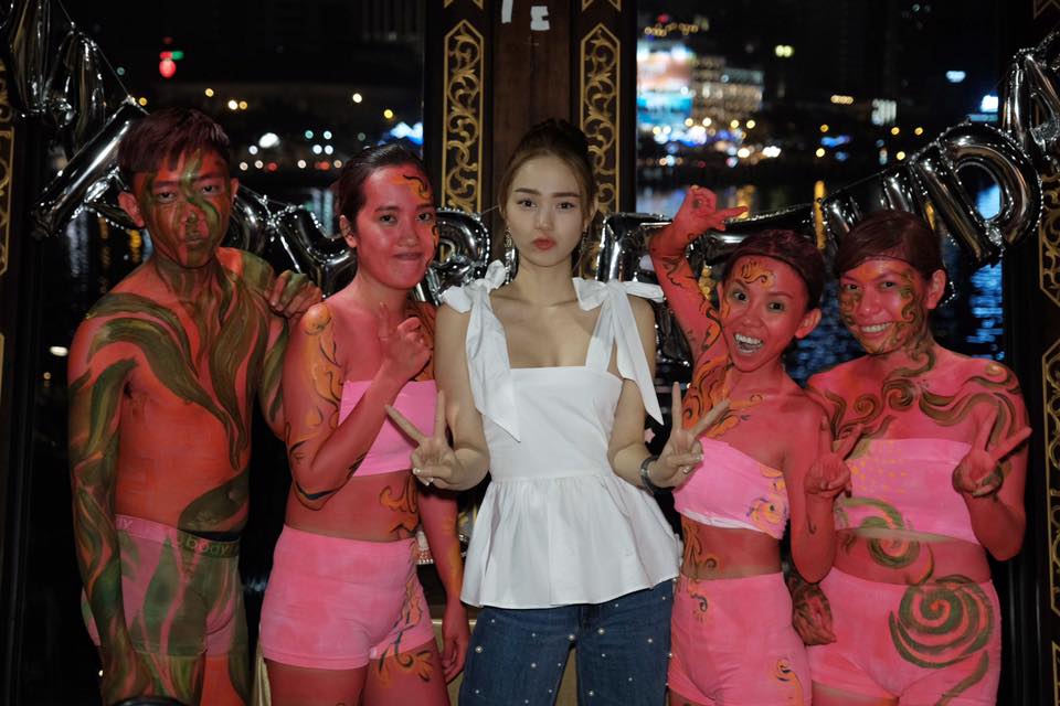 Buổi tiệc còn có sự tham gia của nữ diễn viên xinh đẹp Khả Ngân cùng một vài người bạn thân.