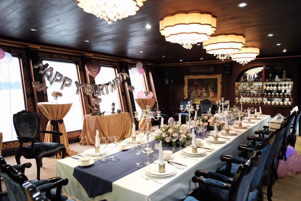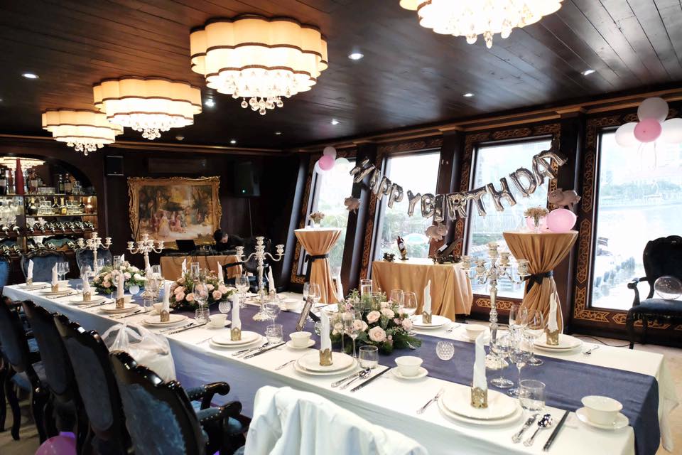 Không gian sang trọng, lãng mạn của buổi tiệc trước khi bắt đầu.