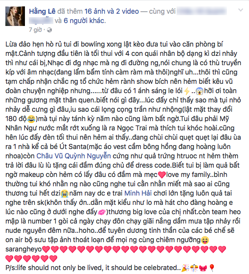 Mới đây, Minh Hằng tiếp tục phải bật khóc khi nhận được món quà sinh nhật đầy bất ngờ và thú vị đến từ những fan “ruột”, “máu mủ” của mình. Cụ thể, trước đó mọi người đều là fan nhưng giờ đã là trợ lý hay những người thân cận luôn đi theo hỗ trợ Minh Hằng và lưu lại loạt khoảng khắc đẹp của thần tượng trên mỗi hoạt động/show diễn.