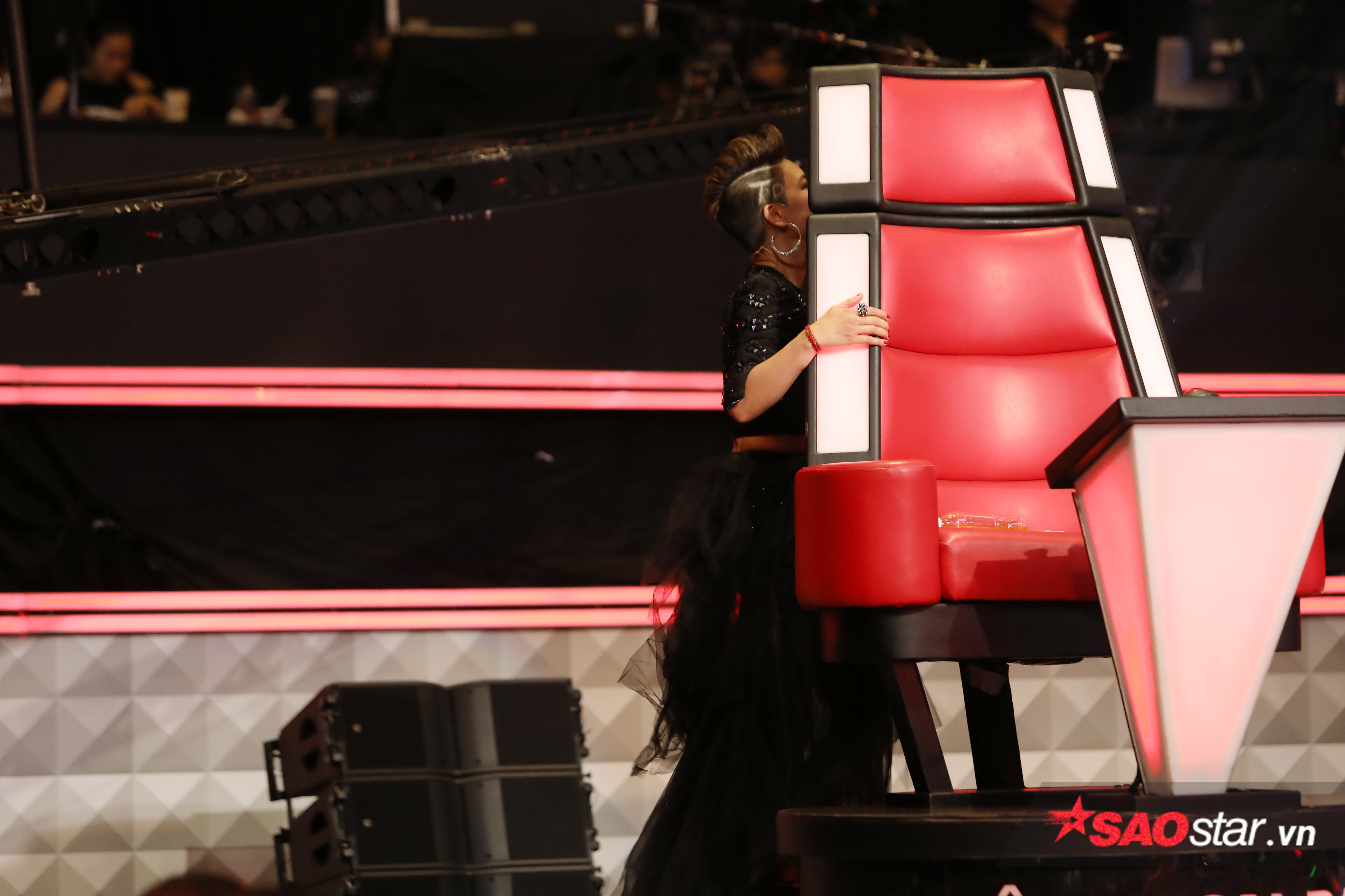 Trong lúc Tóc Tiên nói thì Thu Phương bỏ khỏi ghế, còn Noo Phước Thịnh thì bắt đầu… cởi đồ để thể hiện sự quyết liệt có được giọng hát này.