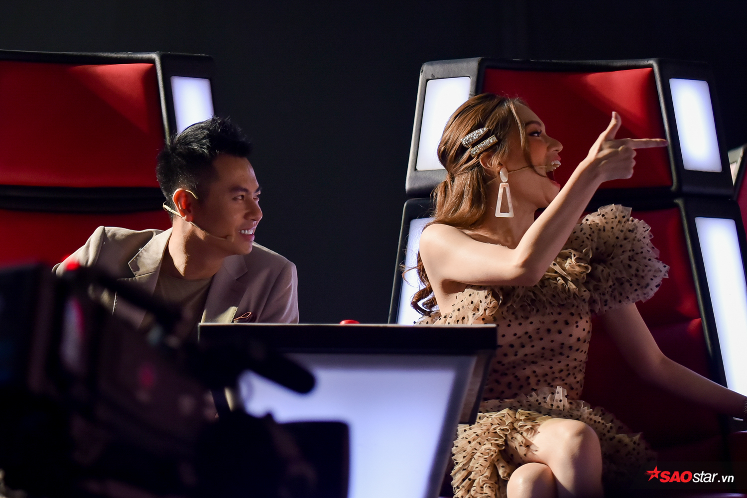 Sau đó, HLV Hương Giang cũng không ngần ngại đối đáp: “Nếu mà nói về cách làm sao để khán giả yêu thích mình nhất thì cô tự tin rằng tất cả các học trò của cô Giang trong mùa năm nay, cô sẽ biết cách làm cho khán giả yêu thích các con nhất, giống như cách mà cô Giang đang ngồi ở đây”.