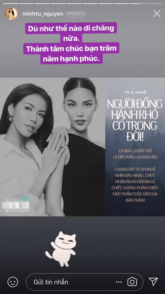 Không những thế, bức ảnh Minh Tú chia sẻ cũng khiến người hâm mộ vui mừng vì có vẻ như, mọi hiềm khích xưa kia đã được xóa bỏ.