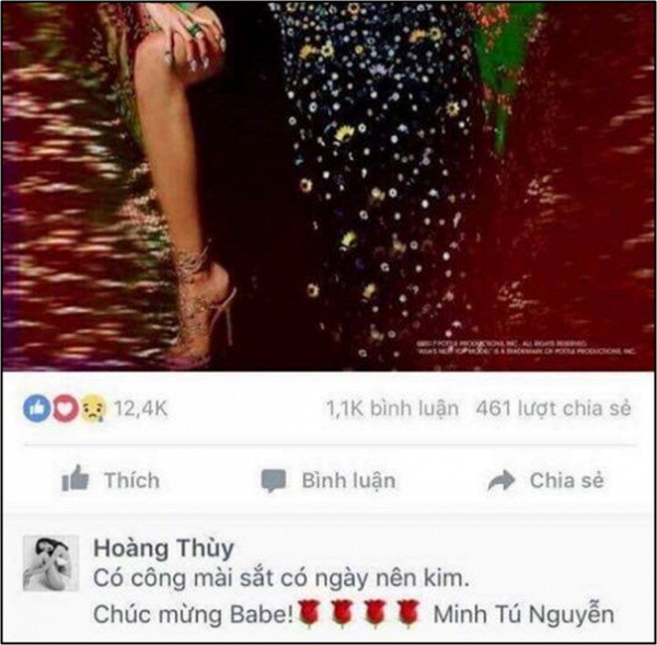 Hoàng Thùy chúc mừng Minh Tú với câu tục ngữ “Có công mài sắt có ngày nên kim”.