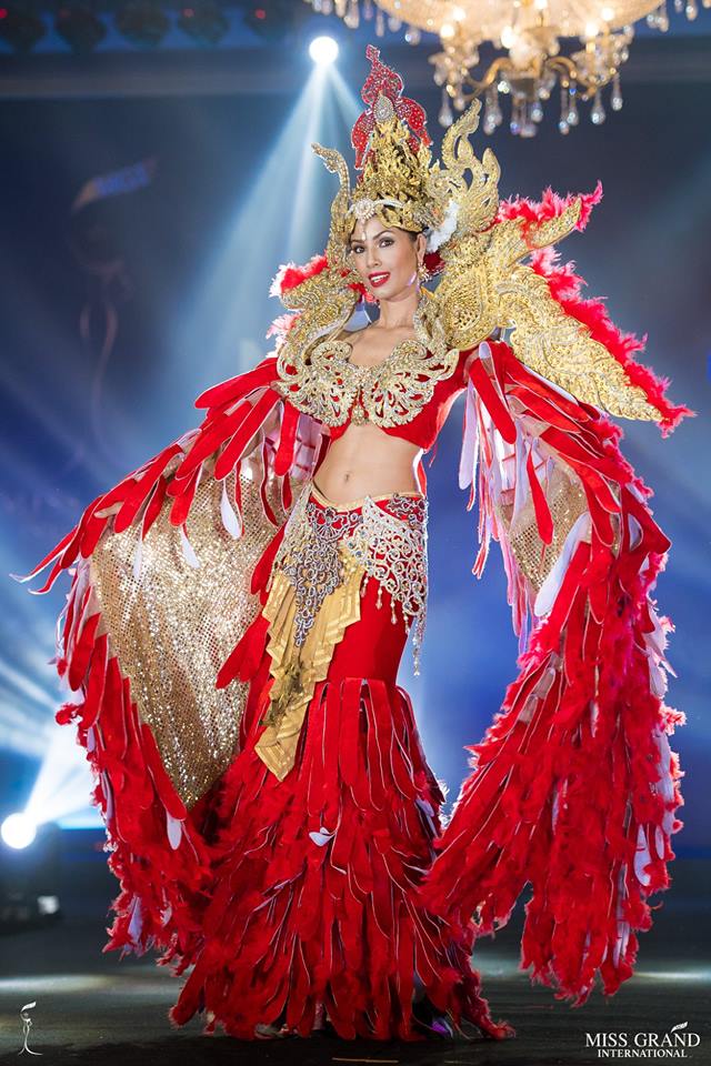 Nhóm thí sinh Đông Nam Á bao giờ cũng khiến khán giả đặt nhiều kỳ vọng bởi họ luôn mang đến những bộ quốc phục cầu kỳ, độc đáo, “nhìn ra ngay” nét văn hóa của đất nước. Lần này với Miss Grand International 2018 cũng không ngoại lệ. Nước chủ nhà Myanmar được ưu ái ghép đôi 2 bức ảnh mặt trước - mặt sau của bộ quốc phục lồng đèn. Người đẹp Thái Lan cũng diện trang phục truyền thống có màu đen - vàng nổi bật cùng họa tiết lá bồ đề mạ vàng.