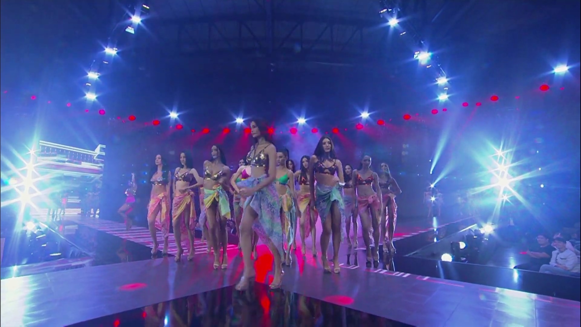 Các thí sinh sải bước trên sàn diễn trong trang phục bikini
