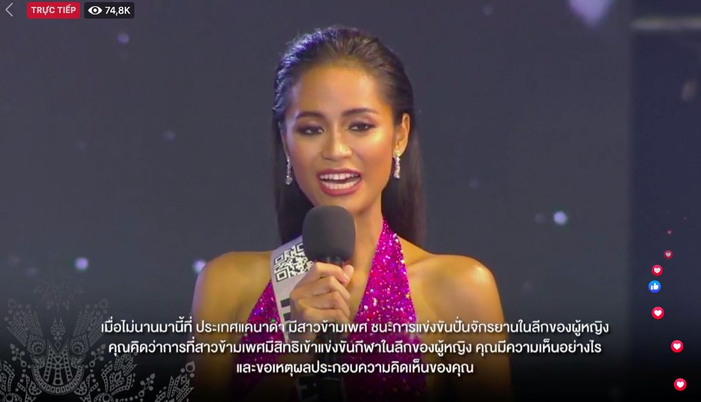 Ngay từ đầu cuộc thi, Paweensuda Drouin đã thu hút truyền thông và nhận được nhiều sự yêu mến từ người hâm mộ. Đặc biệt, sau đêm Bán kết diễn ra vào ngày 27/6 vừa qua, Tân hoa hậu Thái Lan càng được nhiều khán giả tin tưởng và đặt cược cho ngôi vị cao nhất năm nay.