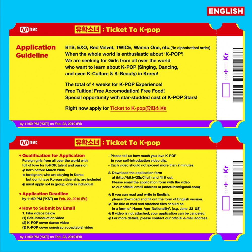 Điều kiện Mnet đặt ra cho những ai muốn tham gia chương trình này: Là fangirl Kpop, là người nước ngoài, sinh trước tháng 3 năm 2004 là đã đủ điều kiện để tham gia chương trình. Chương trình sẽ tạo cơ hội cho các cô gái đam mê Kpop có 4 tuần trải nghiệm ở Hàn Quốc hoàn toàn miễn phí. Các cô gái sẽ được trải nghiệm văn hóa Hàn Quốc, nhan sắc Hàn Quốc, đồ ăn Hàn Quốc và tỉ tỉ thứ khác có liên quan đến xứ sở kimchi này. Đặc biệt, sẽ có những khách mời đặc biệt ghé thăm các cô gái: Những thần tượng của làng giải trí Hàn Quốc. Chỉ có 10 cô gái có được cơ hội này mà thôi.