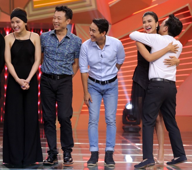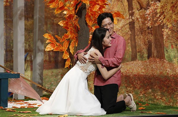 Hiền Thục và nụ cười gượng với cái ôm của Trường Giang.