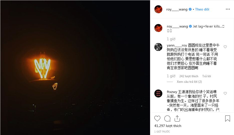 Sáng sớm hôm nay, Vương Nguyên đã cập nhật một bài đăng mới trên Instagram với hình ảnh bát mì còn đang dang dở và dòng trạng thái bày tỏ nhớ nhà. Bởi vì nam ca sỹ trẻ đang ở Boston (Mỹ), lệch múi giờ rất nhiều so với quê nhà, nhưng cậu đã nghĩ đến điều này và đăng bài vào lúc fan hâm mộ có thể lập tức thấy được.
