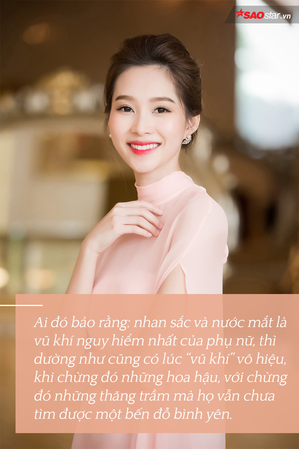Ai đó bảo rằng: nhan sắc và nước mắt là vũ khí nguy hiểm nhất của phụ nữ, thì dường như: cũng có lúc “vũ khí” vô hiệu, khi chừng đó những hoa hậu, với chừng đó những thăng trầm mà họ vẫn chưa tìm được một bến đỗ bình yên.