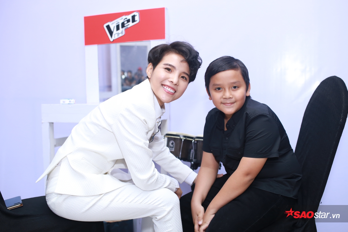 Thuỵ Bình cùng HLV Vũ Cát Tường có mặt từ sớm trong hậu trường Giọng hát Việt nhí 2017.