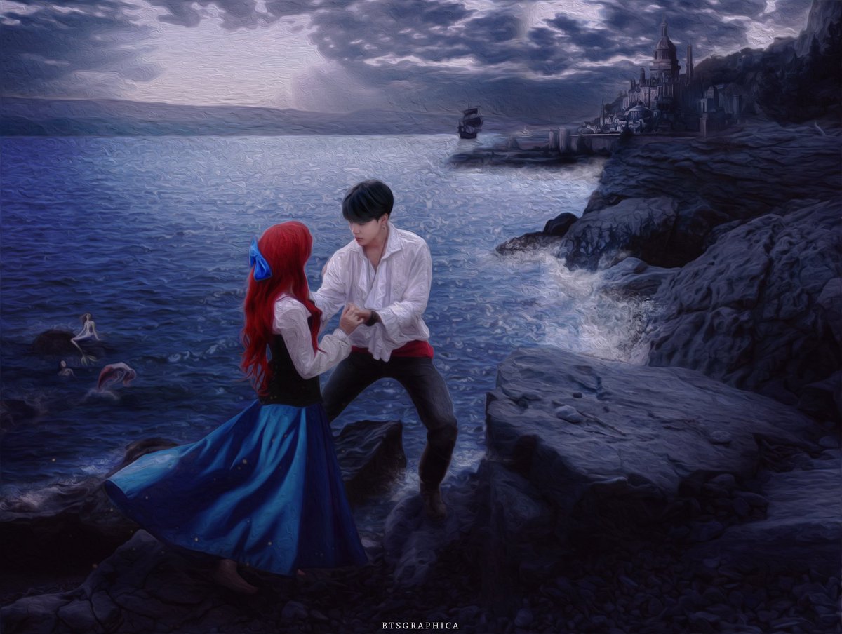 Vẻ đẹp có phần lãng tử của Jimin giúp anh chàng dễ dàng hóa thân vào nhân vật hoàng tử của Little Mermaid.