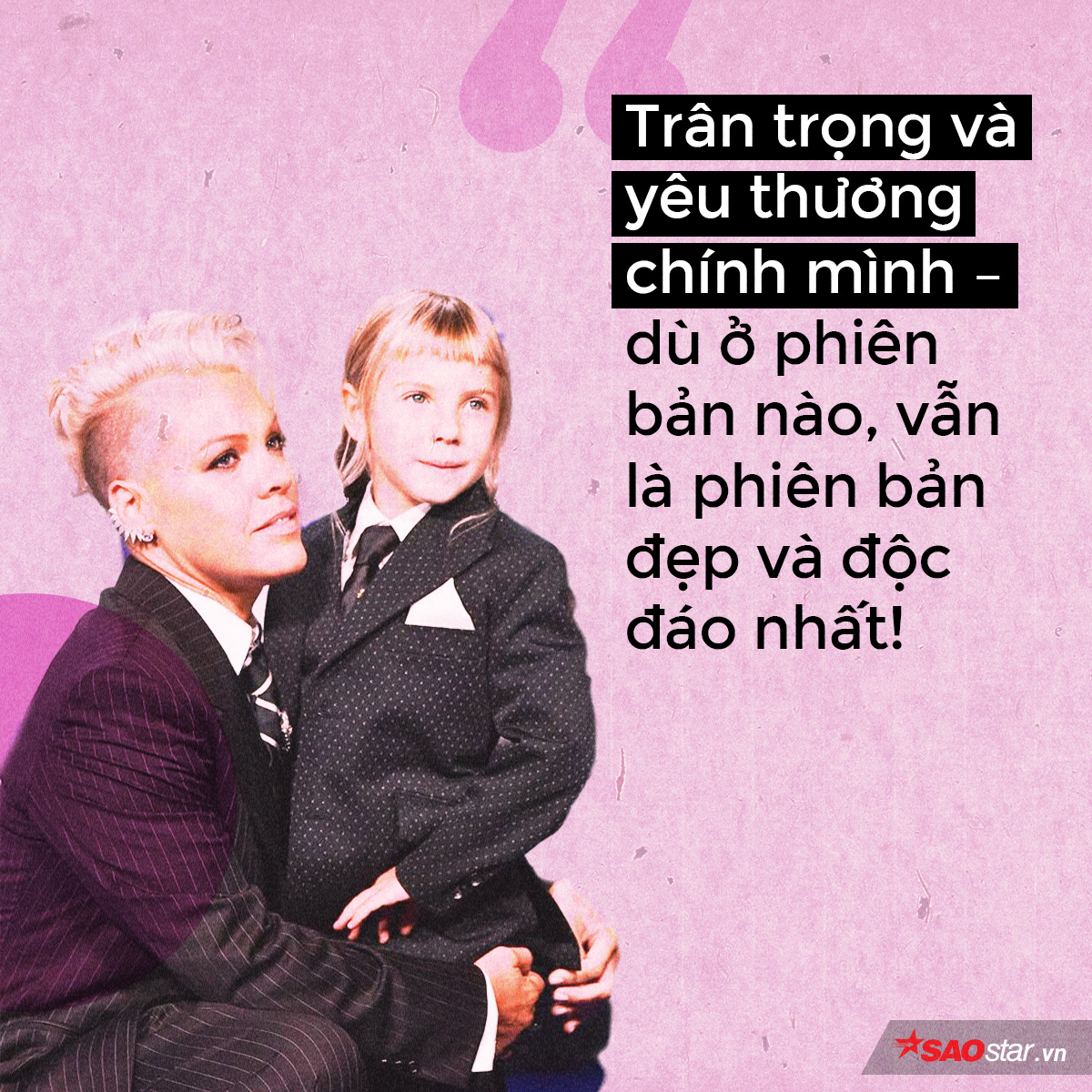 Nhưng cũng vì là Pink - nên mọi lời nói về chủ nghĩa ngoại hình, lại rất thấm thía và cảm động. Từ câu chuyện riêng với con gái, cô thay lời một cách thuyết phục cho tất cả những ai từng một lần mặc cảm vì ngoại hình, từng là “nạn nhân” của những miệt thị về vẻ ngoài - vì Pink không nói như một “đấng xa vời” nào chuyên buôn lời giáo điều, sáo rỗng mà chính cô là minh chứng sống cho câu chuyện: dám sống thật và yêu thương chính mình. Người ta tin, ngưỡng mộ và xúc động, vì không phải ai cũng đủ dũng cảm để đi ngược đám đông!