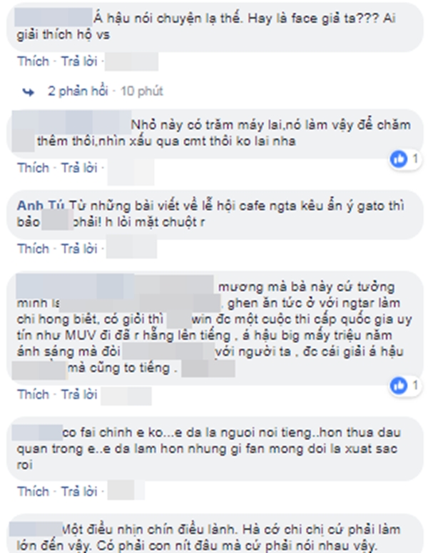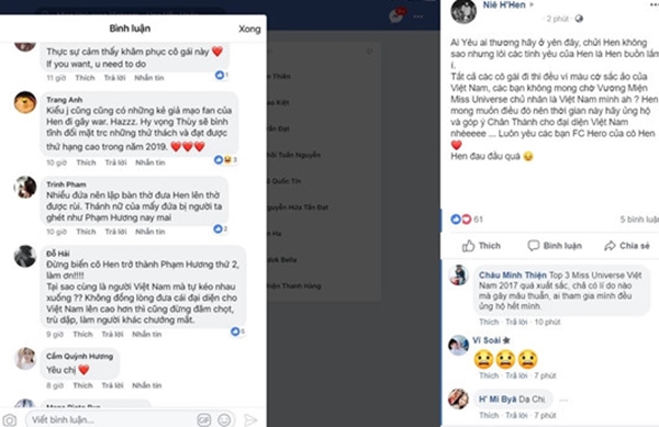 Cô nàng viết: “Đúng là fan nào chủ nấy, thay vì “diễn” nên về nhà đóng cửa dạy dỗ lại fan của mình đi nhé. Nói nghe nè: Những gì các bạn đang làm chỉ càng khiến cho hình ảnh của cô ấy xấu hơn mà thôi“. Có lẽ vì liên tục nhận được bình luận chỉ trích nên H'Ăng Niê đã chỉnh sửa bài viết không còn nhắc đến Hoàng Thùy mà chỉ nhắm đến đối thủ “mải diễn” được cho là H'Hen Niê.