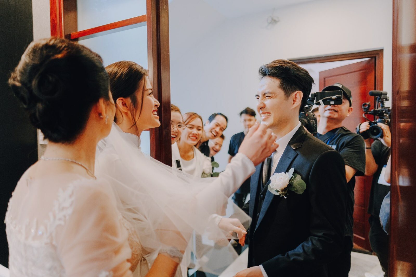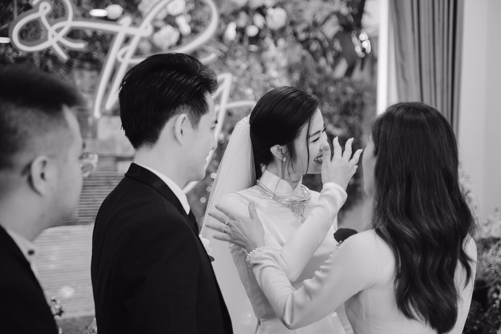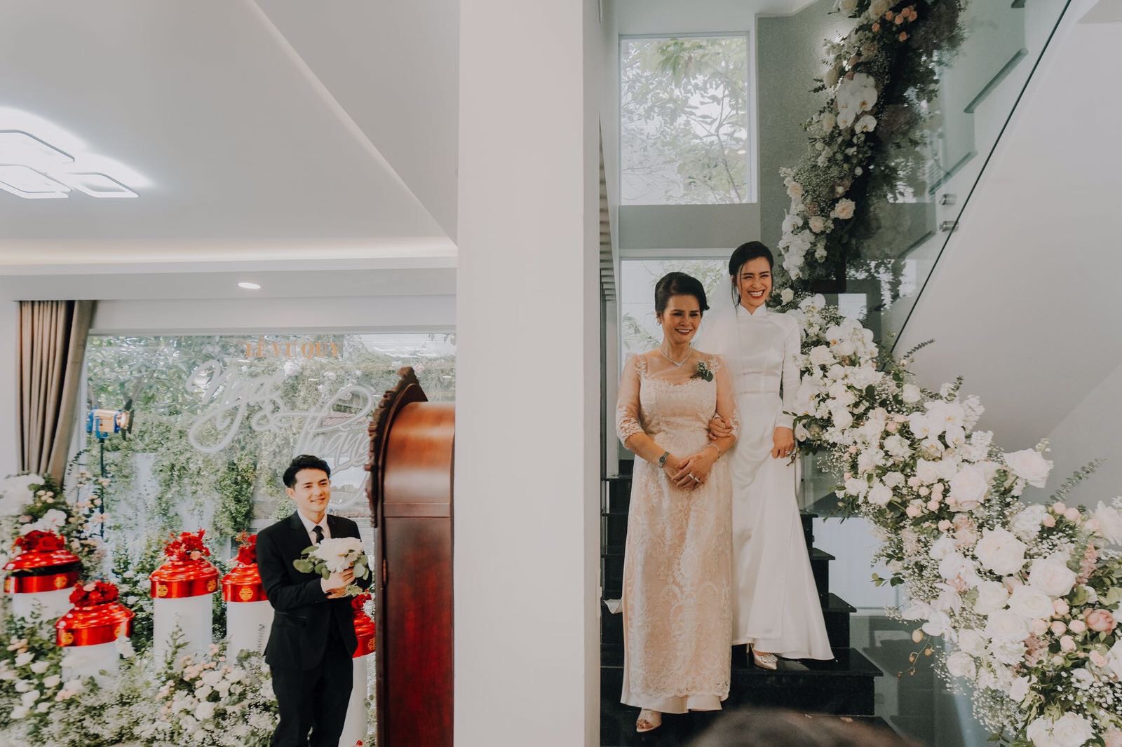 Hạnh phúc khi bước xuống nhà gặp chú rể.