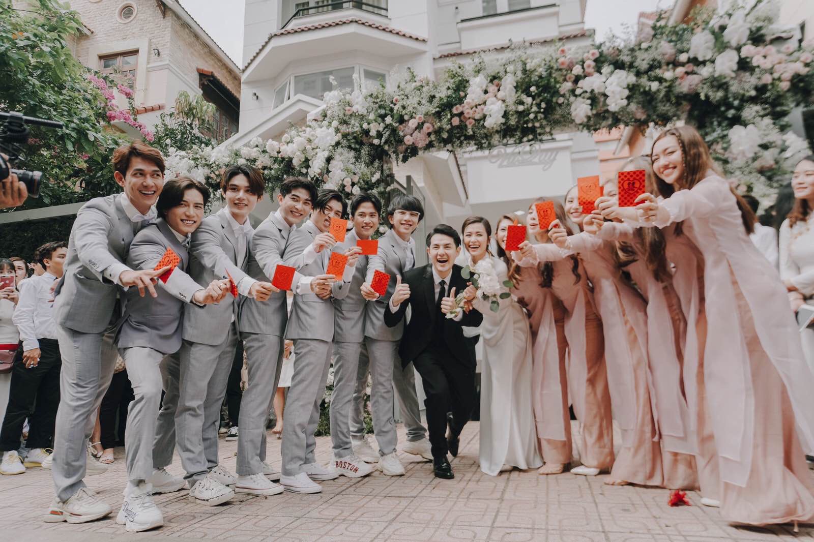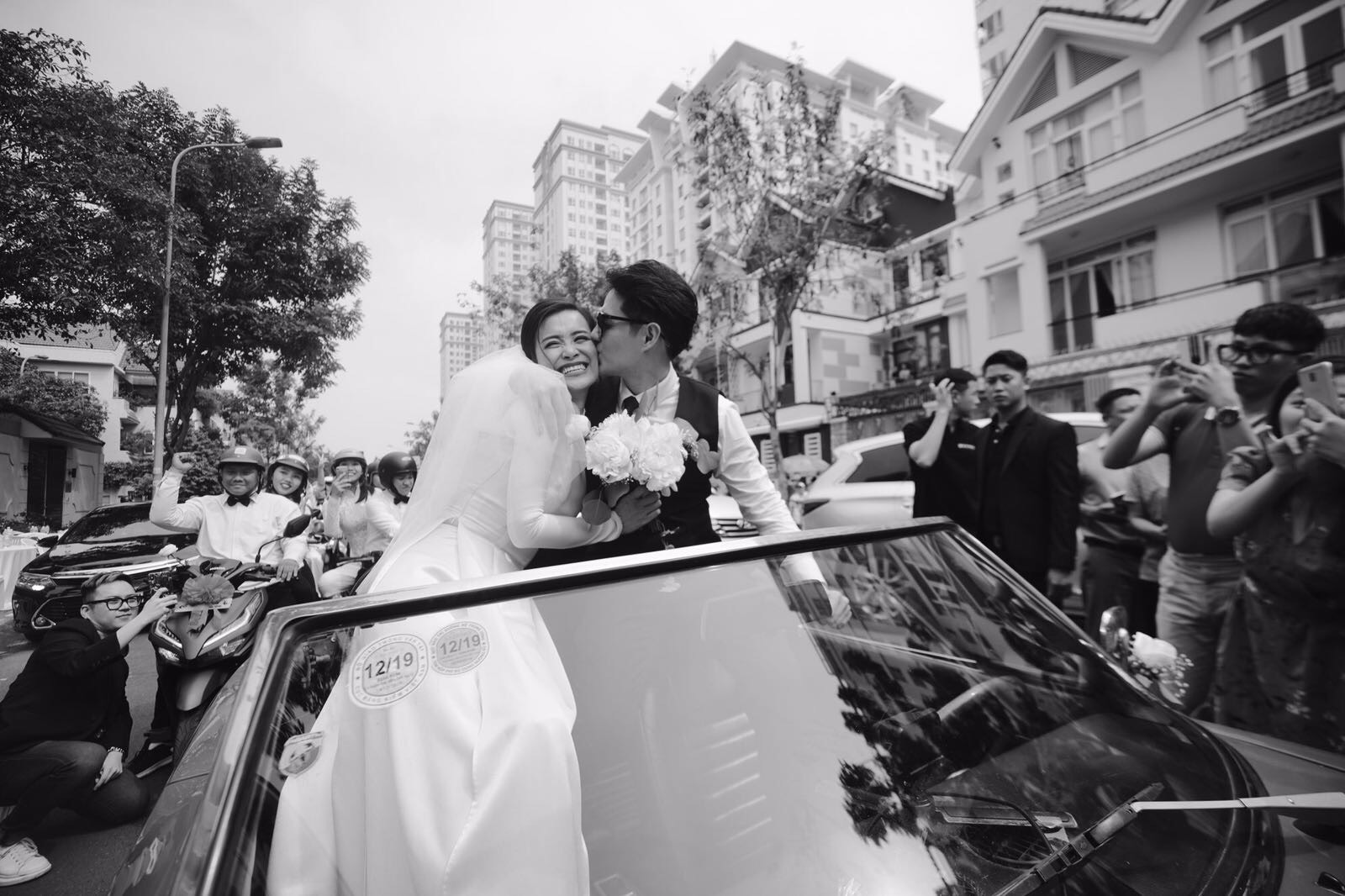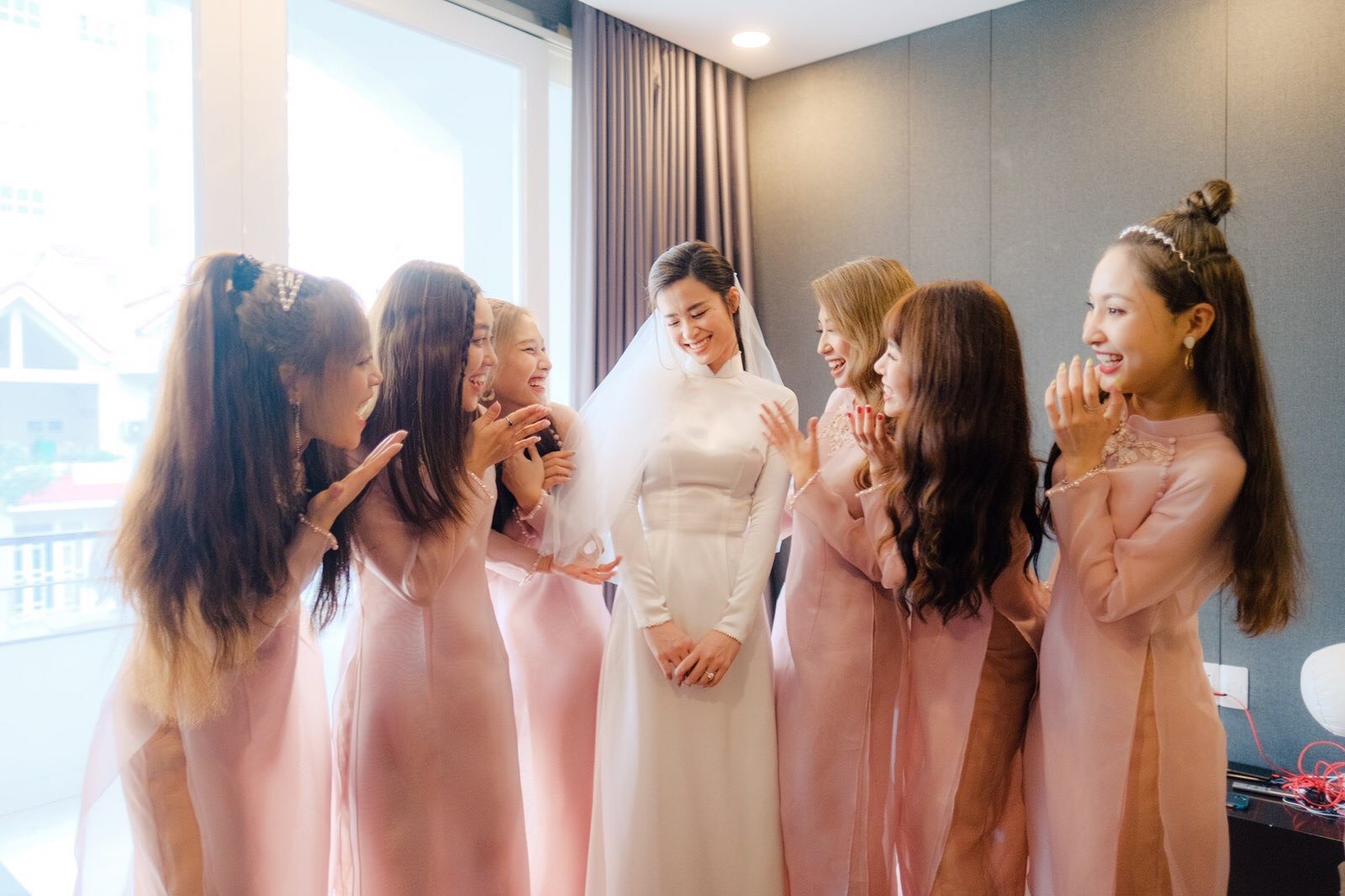 Hạnh phúc khi bước xuống nhà gặp chú rể.