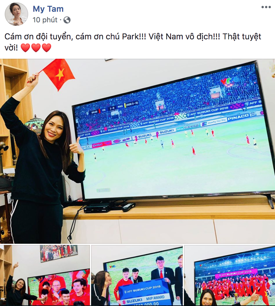 Mỹ Tâm ăn mừng với từng khoảnh khắc lịch sử của đội tuyển Việt Nam.