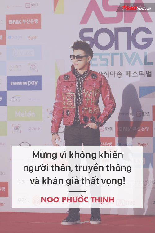 Mặc dù đứng chung sân khấu với nhiều nghệ sĩ nổi tiếng của KPop như EXO, TWICE, Mamamoo, Seventeen, NCT, Basick… nhưng Noo Phước Thịnh chẳng hề lép vế tại Asia Song Festival 2016. Nam ca sĩ mang đến 2 ca khúc sôi động Gạt đi nước mắt và I Don’t Believe In You khiến cả sân khấu như “bùng nổ”. Hàng ngàn khán giả không ngừng hò hét, cổ vũ cho Noo Phước Thịnh.