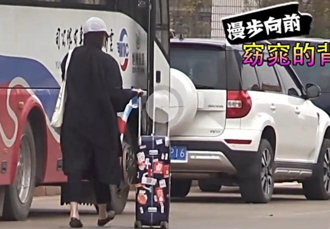 Cô gái bí ẩn với áo khoác đen đẩy vali đi về phía chiếc xe màu trắng của Hoàng Hiên.