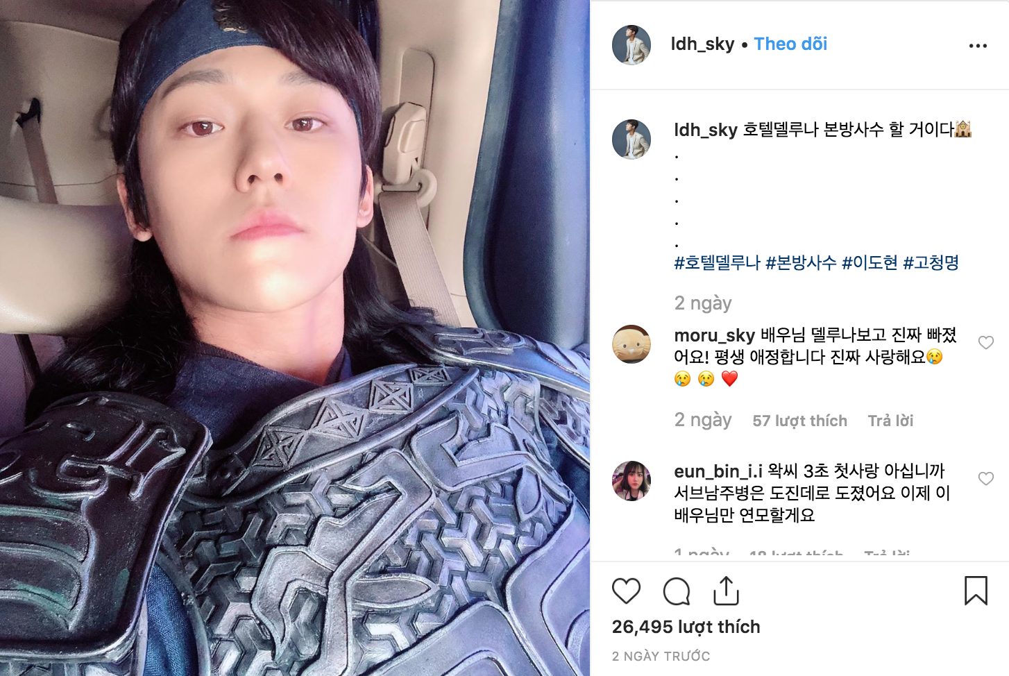 Cách đây 2 ngày, Lee Do Hyun đã đăng tải trên Instagram hình ảnh chính mình trong tạo hình nhân vật trong phim. Anh viết: “Tôi sẽ xem phim Hotel del Luna đúng giờ“. Dưới phần bình luận, nhiều fan bày tỏ sự yêu thích trước những gì anh chàng thể hiện trong bộ phim.
