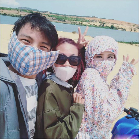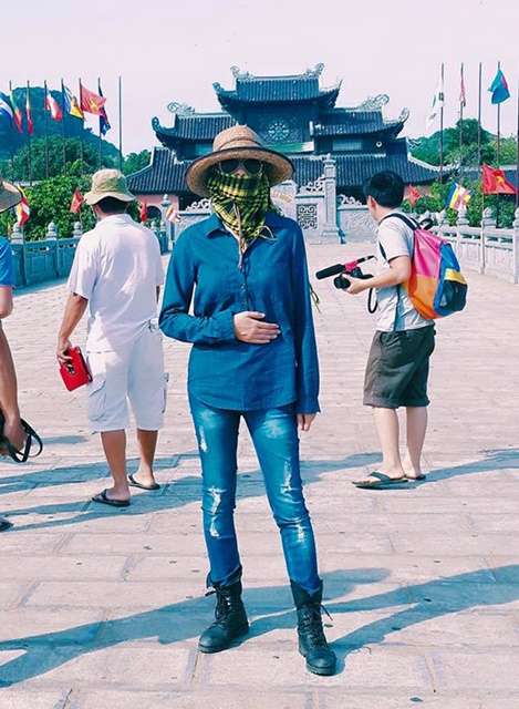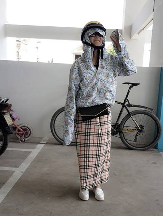 Hoàng Yến Chibi kín mít từ đầu tới chân để chống nắng.
