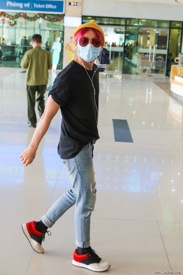 Khẩu trang luôn là vật bất li thân của Sơn Tùng mỗi khi ra ngoài trời nắng.