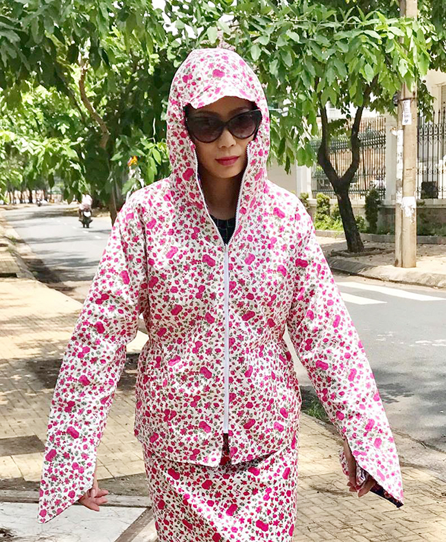 Ngọc Thảo sẵn sàng đeo khẩu trang, găng tay dài chống nắng….