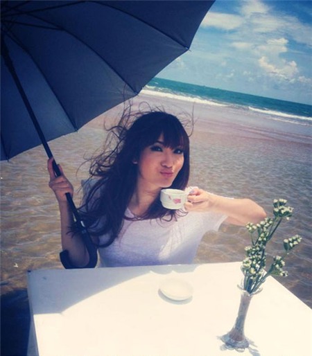 Đi tắm biển nhưng cũng cần che chắn cẩn thận vì quá nắng giống Trúc Diễm nhé!