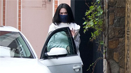 Ngồi trong ô tô, Ngọc Trinh cũng phải mặc áo, đeo khẩu trang kín mít.