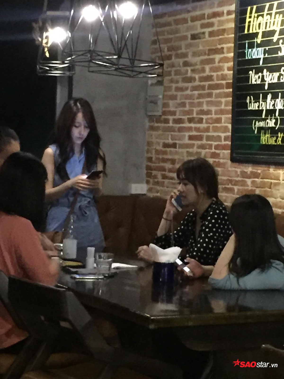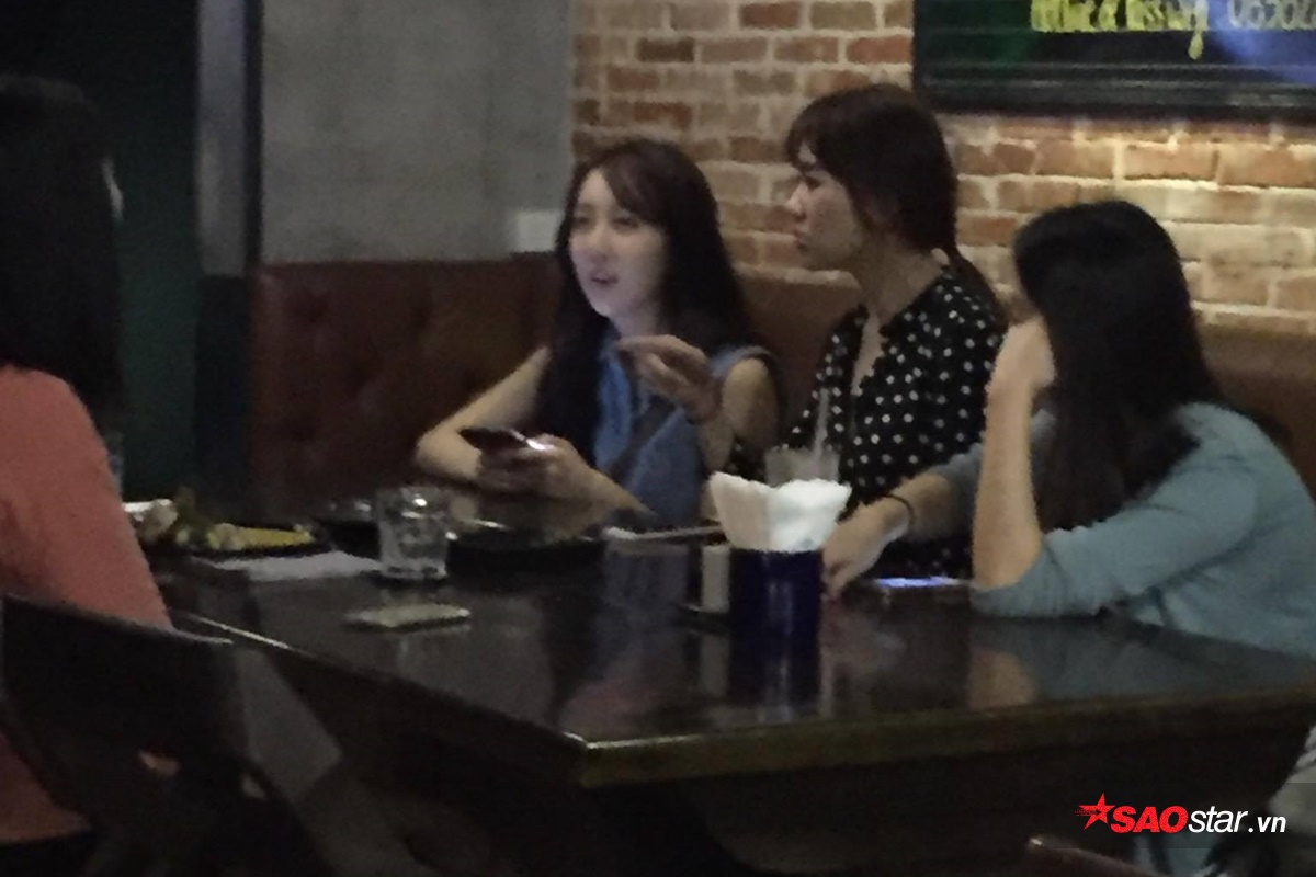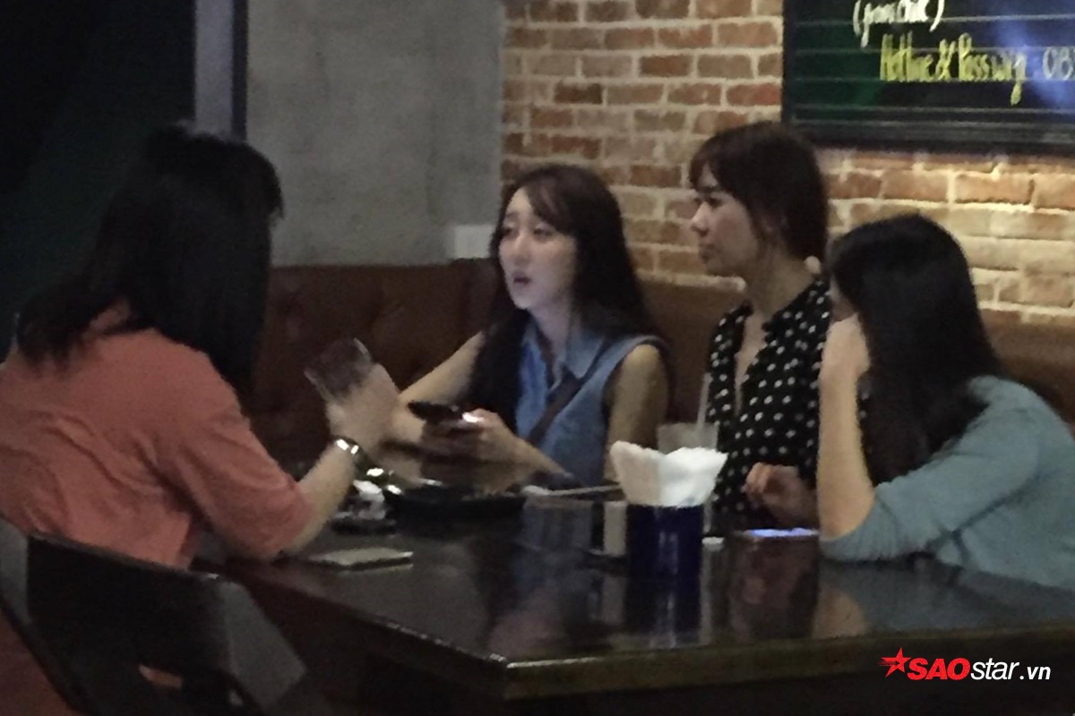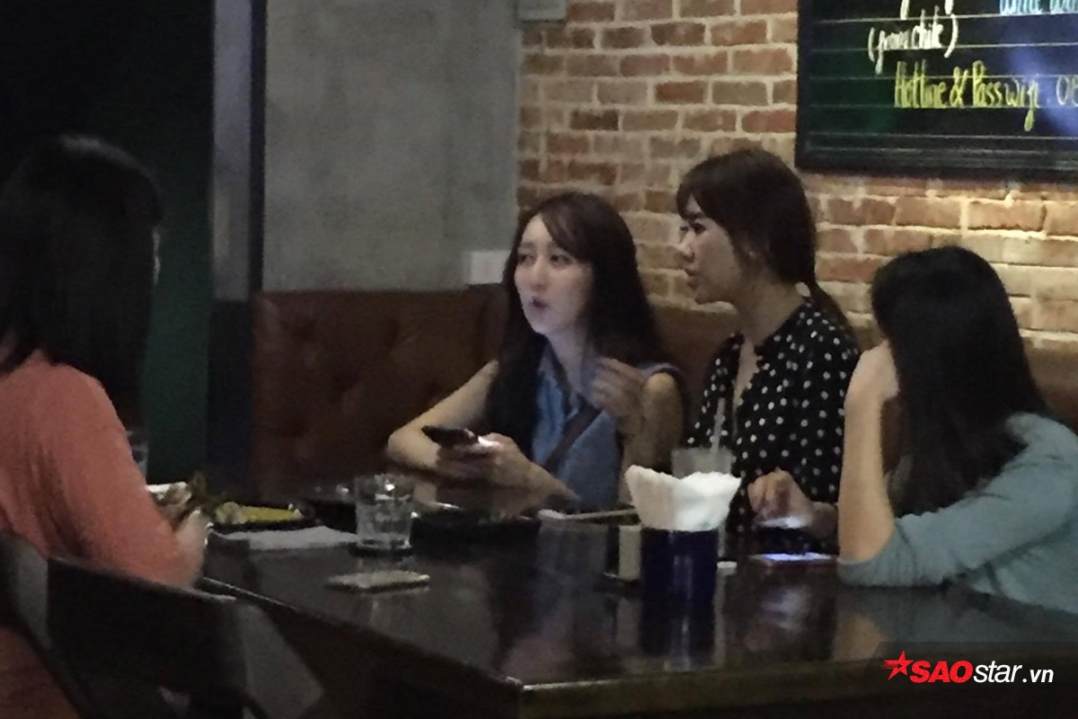 Xuất hiện tại một quán cafe khá vắng vẻ, Hari Won cùng em gái và những người bạn thân thoải mái trò chuyện cùng nhau.