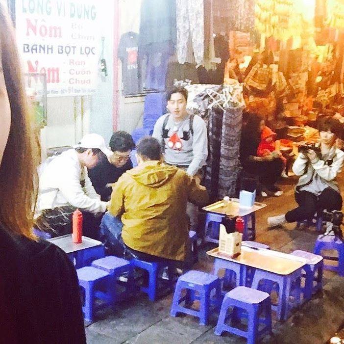 Ngay sau đó, một số fan cũng kịp thời săn được hình ảnh của đoàn ở các quán ăn vặt nổi tiếng trên đường Đinh Tiên Hoàng. Những hình ảnh giản dị và thú vị này khiến cộng đồng fan Việt Nam đang vô cùng thích thú.