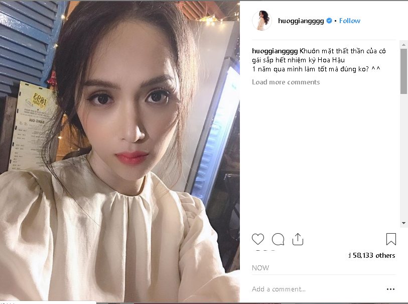 Dù đã làm được rất nhiều điều vượt ngoài khả năng mong đợi của người hâm mộ nhưng khi sắp hết nhiệm kỳ Hương Giang vẫn đau đáu rằng liệu mình trong 1 năm qua đã làm tốt nhiệm vụ. Diễn viên Quốc Anh và hoa hậu Mai Phương Thúy đã vào comment động viên Hương Giang.