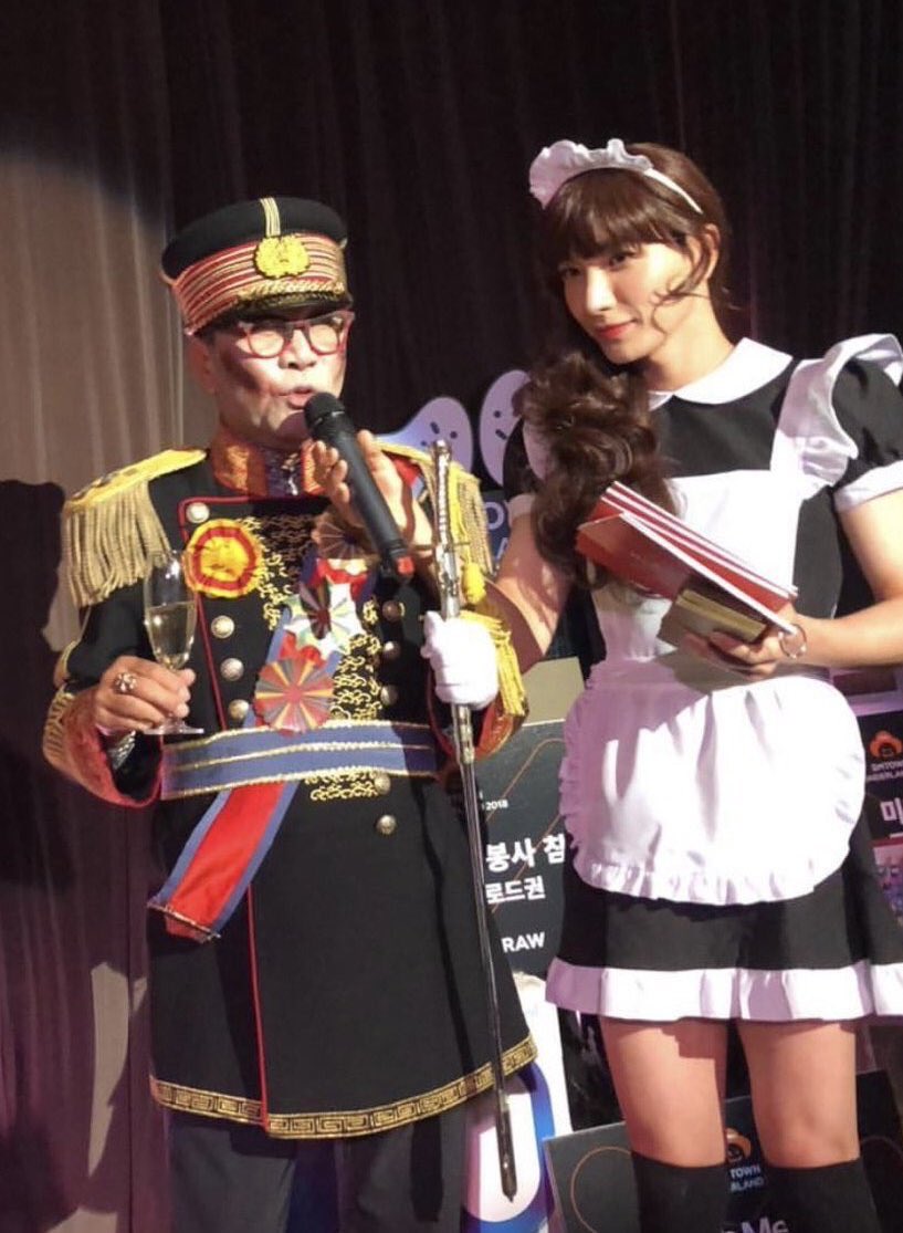 1. Leeteuk (Super Junior) hóa thân thành cô hầu gái và Lee Soo Man làm trưởng ban nhạc diễu hành