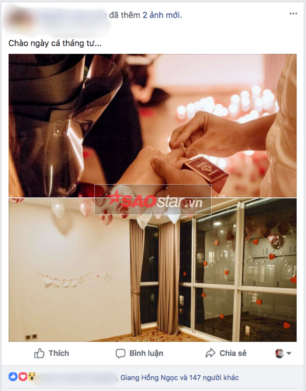 Trên trang cá nhân của người này chia sẻ ảnh cầu hôn một người con gái.