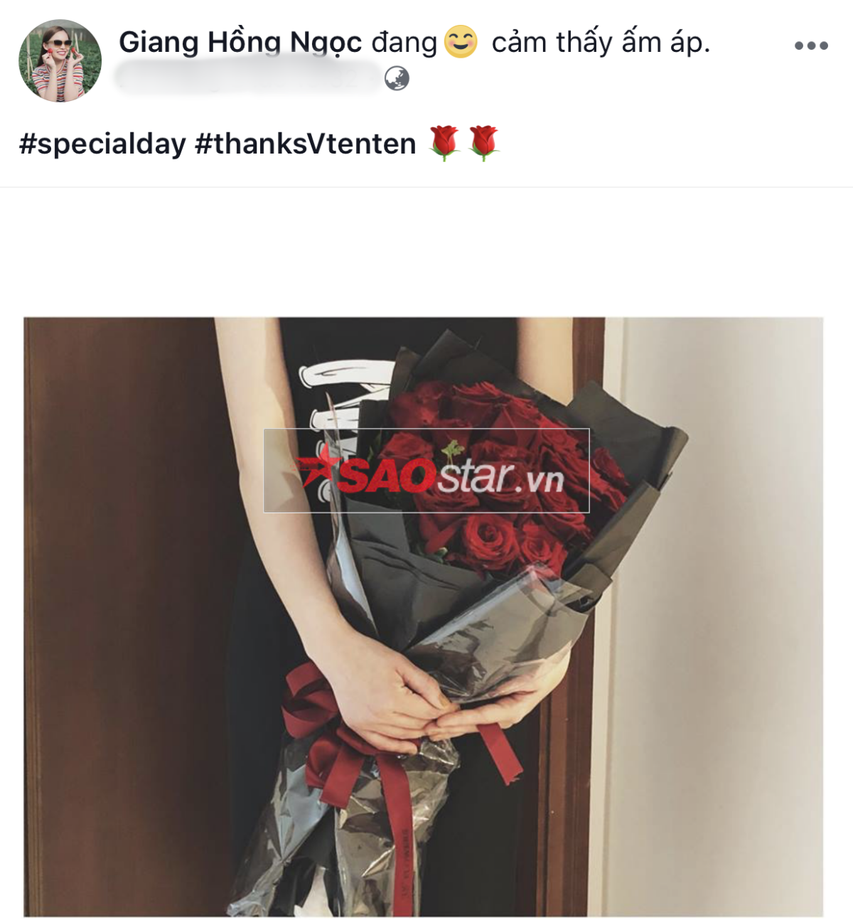 … và bó hoa trên tay của Giang Hồng Ngọc được cô chia sẻ trên trang cá nhân.