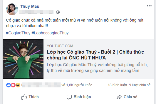 Mâu Thuỷ từng làm những clip youtube về môi trường và cũng tự xưng là cô giáo.