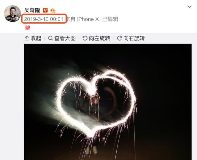 Nhớ lại ngày sinh nhật của Lưu Thi Thi vào năm 2019, Ngô Kỳ Long đã gửi lời chúc phúc đến Lưu Thi Thi ngay phút giây đầu tiên và nội dung hình trái tim cũng giống năm nay. Ngô Kỳ Long dùng pháo hoa que để vẽ hình trái tim để nhắn gửi tình yêu của mình dành cho vợ.
