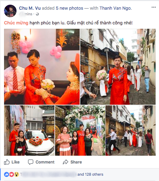 Mới đây, trên trang cá nhân, nhà báo Chu Minh Vũ bất ngờ chia sẻ hình ảnh Ngô Thanh Vân diện áo dài đỏ xuất hiện trong một đám hỏi cùng dòng chú thích đầy ẩn ý: “Chúc mừng hạnh phúc bạn iu. Chúc rể giấu mặt thành công nhé”.