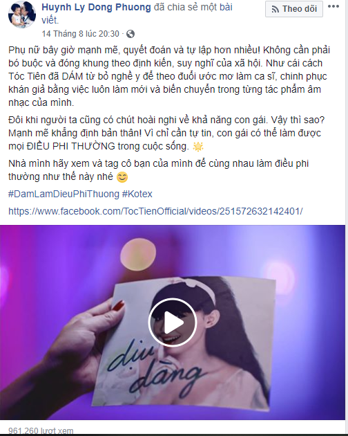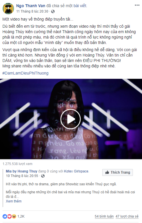 Họ đều là những cô gái nổi tiếng bậc nhất showbiz Việt khẳng định bản thân bằng chính thực lực của mình. Để trở thành những ngôi sao sáng như ngày hôm nay, họ đều phải vượt qua những định kiến lớn lao của xã hội, sự ngăn cản của gia đình, những ánh mắt soi mói của người đời, để đột phá và tiến tới thành công, dám làm điều phi thường (#damlamdieuphithuong). Vì vậy, hơn ai hết họ hiểu được rằng Thùy và Tiên đã phải dũng cảm và quyết tâm đến thế nào. Cùng xem nhé!