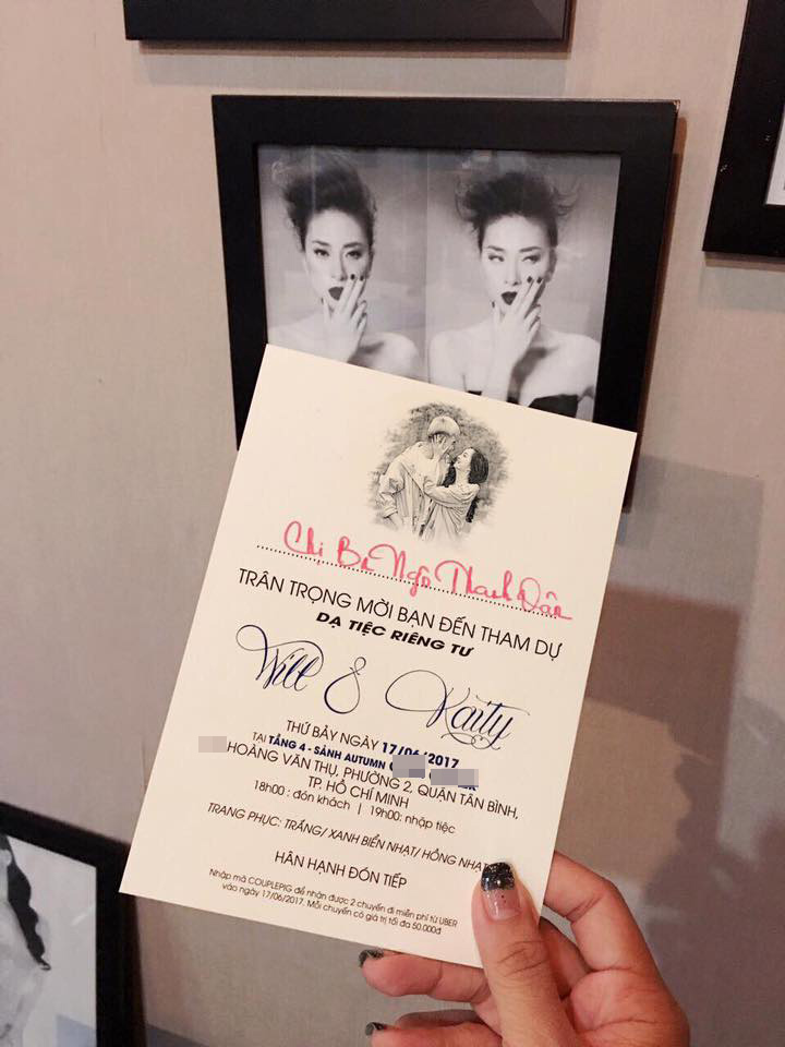 “Nhận đc cái thiệp mời có tí vui mừng trong bụng cho chàng trai ấy… Chúc mừng nè… chuẩn bị đi nè! #will365 #kaity” - Ngô Thanh Vân không quên chúc mừng trò cưng.