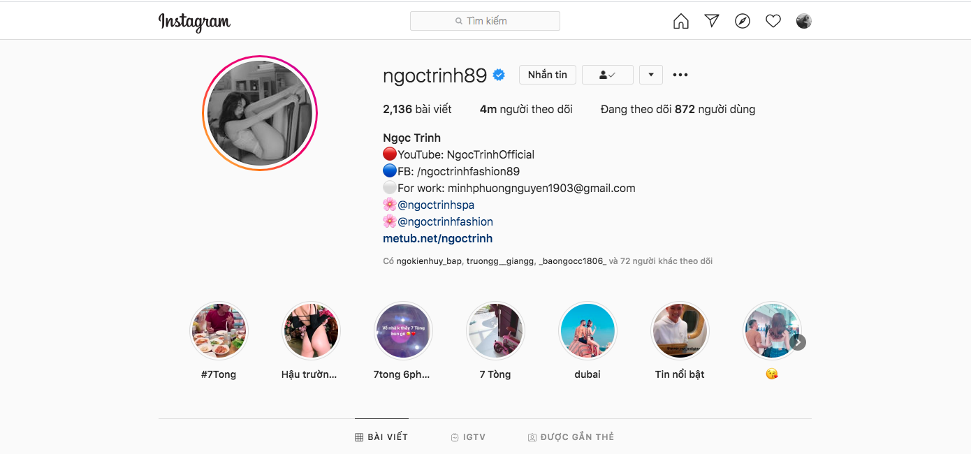 Nếu như theo dõi kênh instagram của Ngọc Trinh, khán giả đều có thể thấy rằng nữ hoàng nội y thường xuyên cập nhật những thông tin đời thường. Chính vì sự gần gũi cũng như thân thiện của Ngọc Trinh khiến cho lượng theo dõi trên instagram của người đẹp tăng lên chóng mặt.