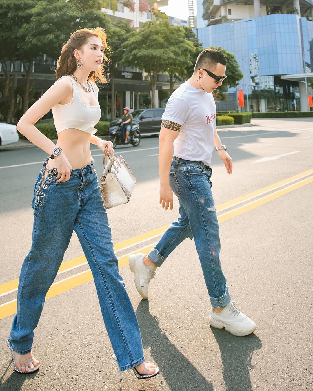 Theo đó, ông bầu Vũ Khắc Tiệp vừa mới chia sẻ loạt khoảnh khắc cùng với “gà nhà” của mình. Trong những bức ảnh, Ngọc Trinh diện áo croptop trắng cùng chiếc quần jean ống rộng, khoe trọn “vòng eo con kiến” và vóc dáng vô cùng mảnh mai, quyến rũ của mình.