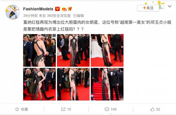 Và sau khi biết Ngọc Trinh là ai, cư dân mạng xứ Trung đã gọi cô là “đệ nhất mỹ nhân Việt Nam”. Thế nhưng có vẻ, nhan sắc trên thảm đỏ của Ngọc Trinh cũng như bộ cánh hở bạo lại trở thành đề tài bàn tán nhiều nhất.