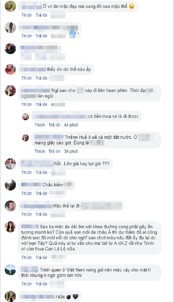 Khi Ngọc Trinh lựa chọn bộ cánh hở bạo, nhiều người còn nói rằng tại sao người đẹp không học hỏi các đàn chị, những người đi trước để có thể lựa chọn 1 bộ cánh phù hợp nhất. Việc cô lựa chọn “khoe thân quá đà” và gây chú ý với truyền thông quốc tế chưa hẳn là một sự lựa chọn khôn ngoan.