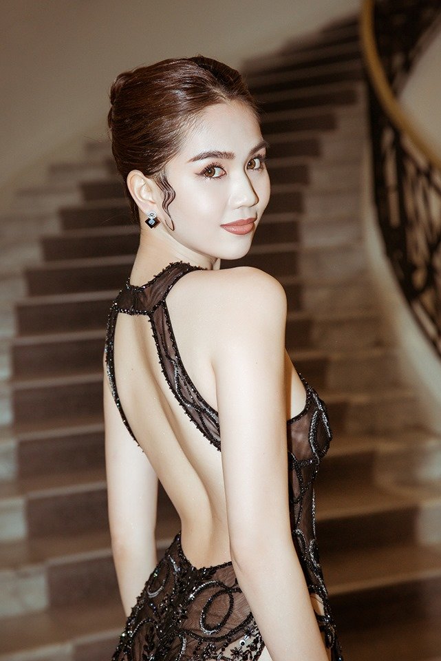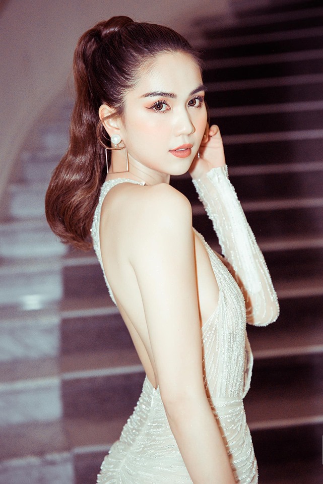 Chiếc váy của NTK Lê Thanh Hòa như dành riêng cho nữ hoàng nội y Ngọc Trinh khi tôn lên ba vòng hoàn hảo của cô. Làn da trắng muốt như sứ của cô cực kì hợp với bộ váy này.