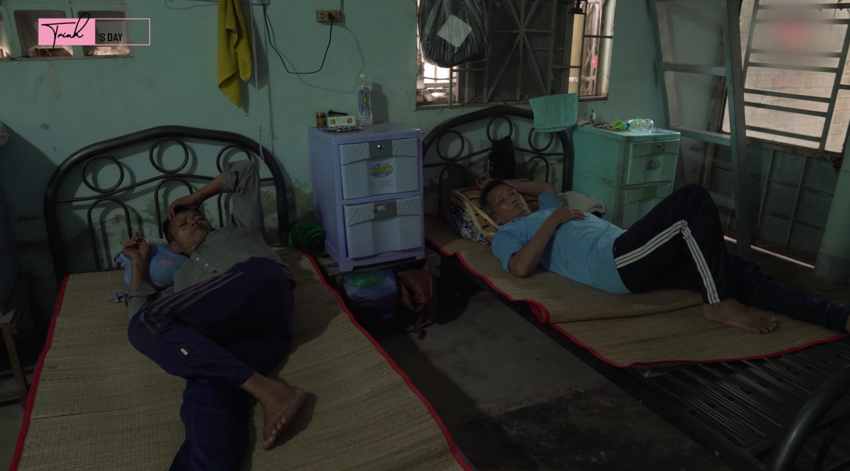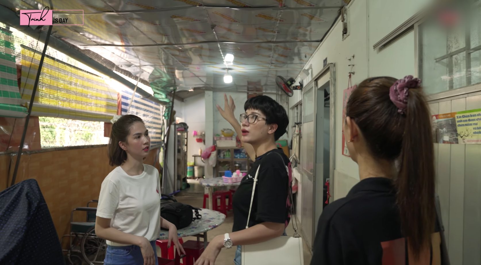 Sau đó, diễn viên Trang Trần đã đưa Ngọc Trinh vào bên trong đồng thời chia sẻ về hoàn cảnh của các cụ đang sống tại đây. Đa phần mọi người đều tự chăm sóc nhau và hoàn cảnh cũng tương đối thiếu thốn, tận dụng nhà kho để nằm. Phòng ăn trước đó được Ngọc Trinh tài trợ 10 triệu để sửa chữa trần nhà nhưng vách xung quanh vẫn còn khá ọp ẹp khó chống được mưa bão. Các cụ lớn tuổi hơn thì được ăn uống và vệ sinh cá nhân tại giường trong phòng bên cạnh.